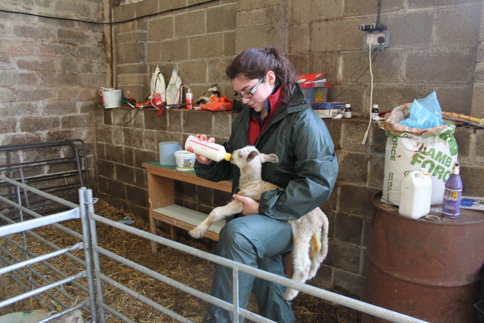 | Emily feeding a Bluefaced Leicester lamb one of triplets whose mum died at Princetown |